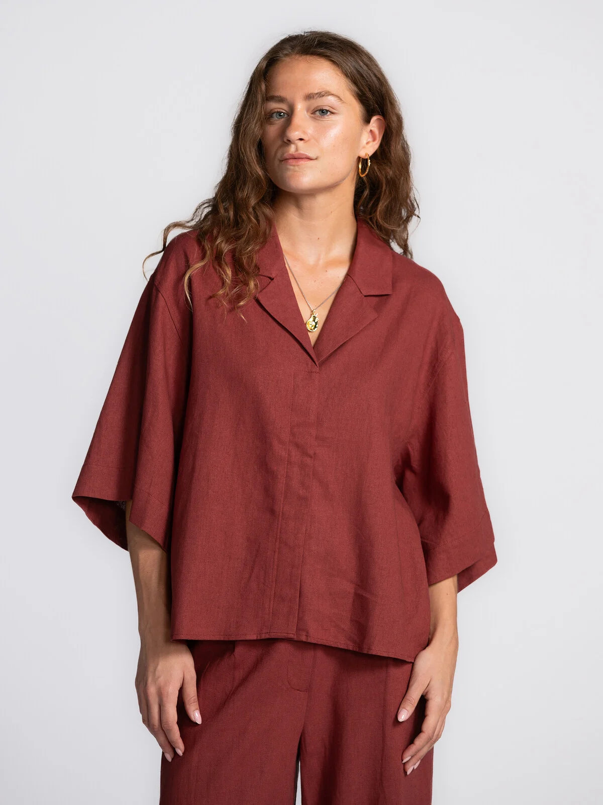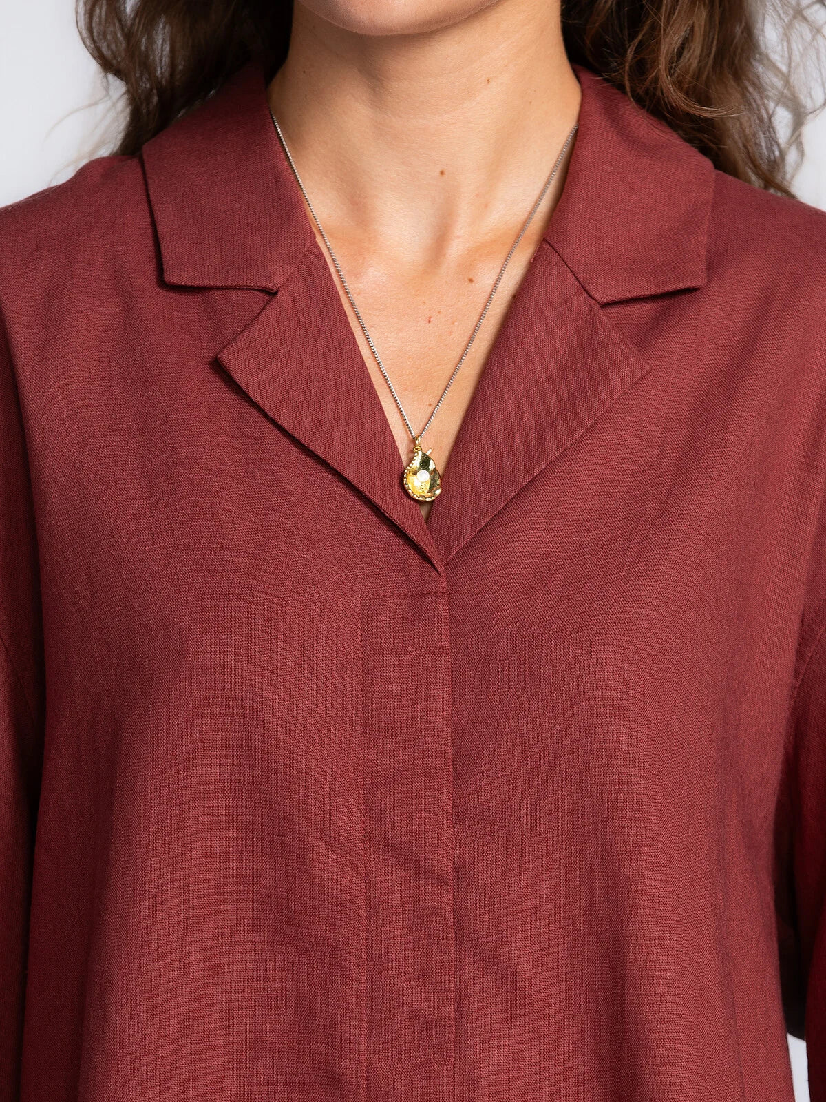 Burgundy breeze. Dit luchtige hemd in linnenmix met 3/4 mouw is een veelzijdige essential. De relaxte fit zorgt voor comfort van ochtend tot avond - stijlvol op kantoor, nonchalant tijdens een avondwandeling of casual met een jeans.
