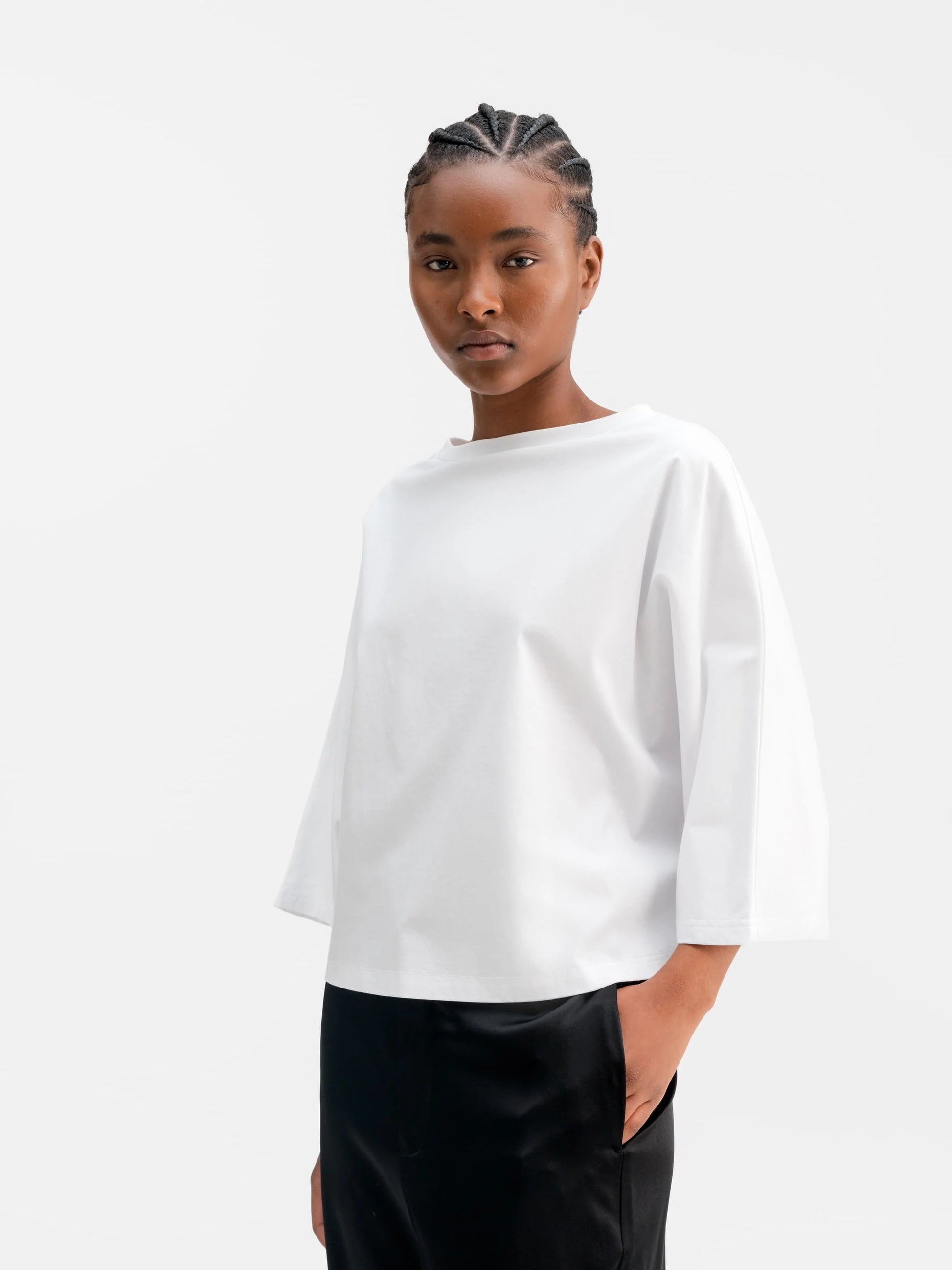 De Thea Jersey Tee is gemaakt van katoenen jersey en heeft een oversized, relaxte pasvorm met speelse “penguin” mouwen en een nette afwerking rond de boothals