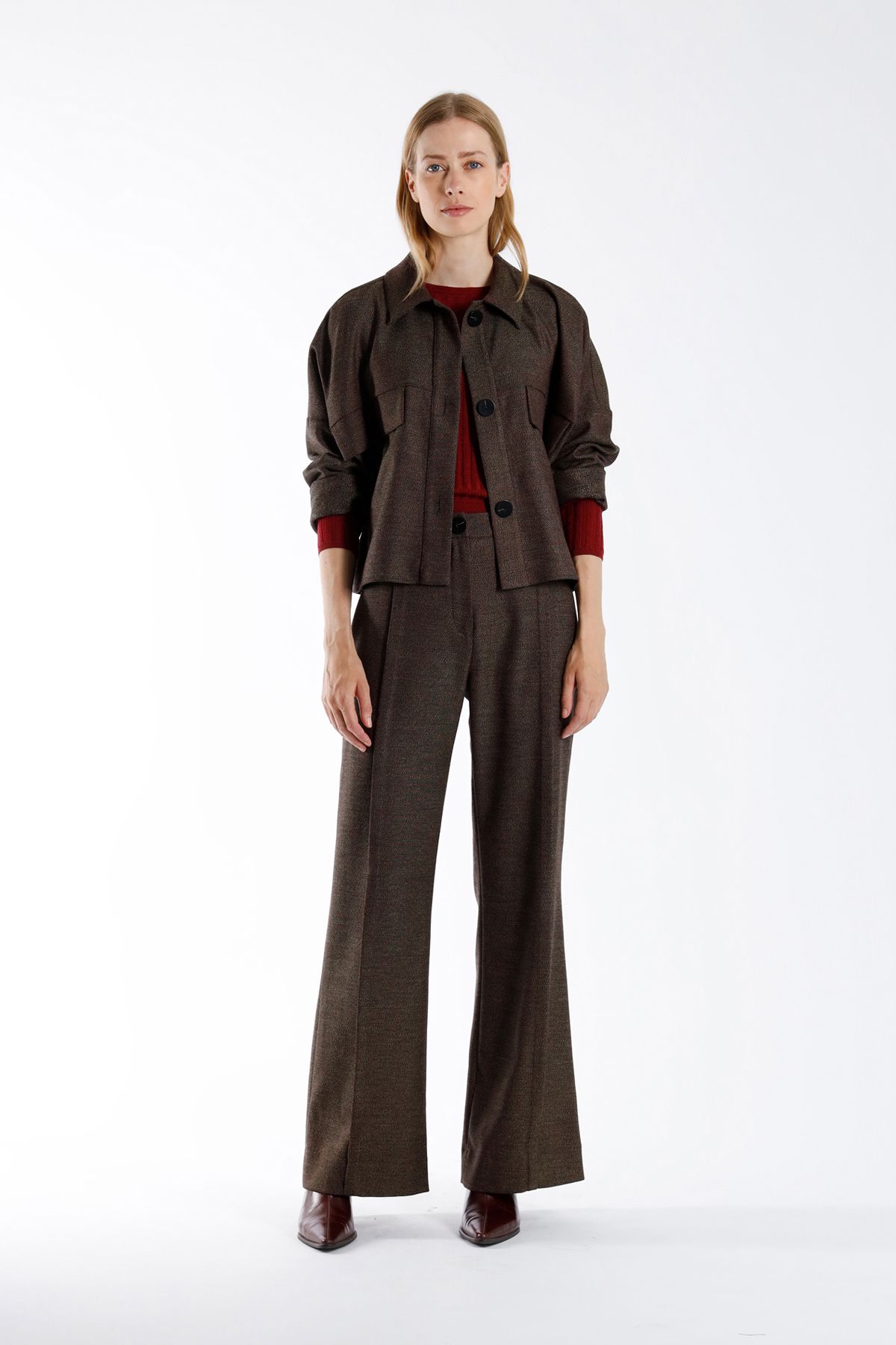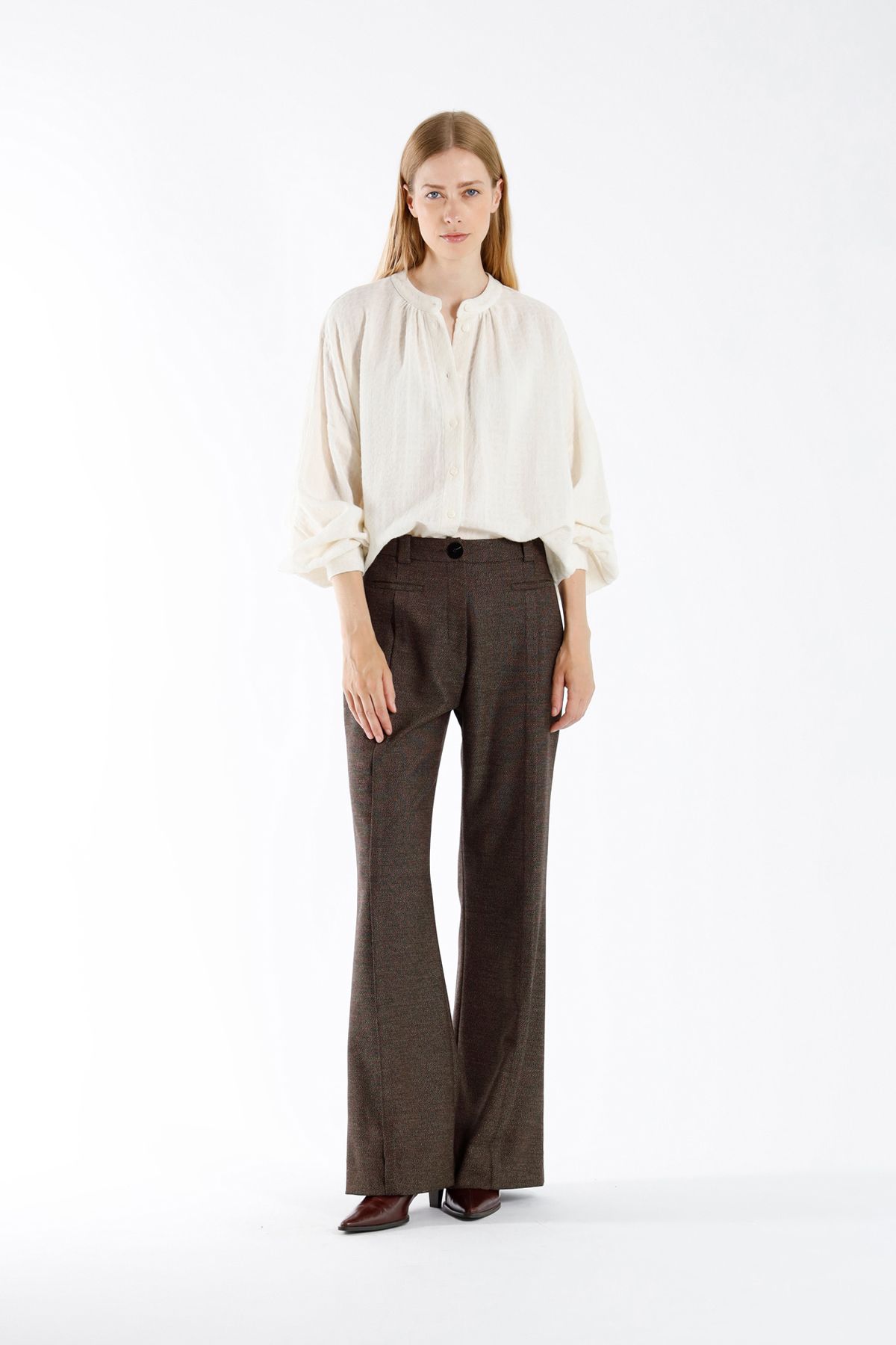 De licht uitlopende pijpen, zichtbare plooien en paspelzakken aan de voorkant geven de LUCA broek een vleugje glamour. Het subtiele moiré-effect laat de stof van kleur lijken te veranderen, afhankelijk van hoe het licht erop valt.