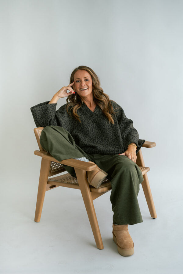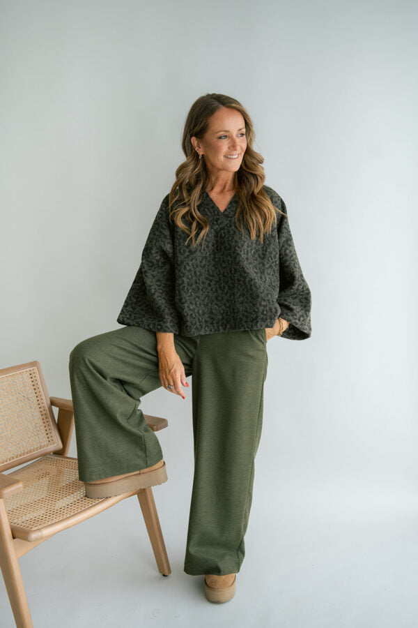Heerlijk zacht groen top in groen leopard. De mouw van dit t-shirt is onderaan een beetje wijder.