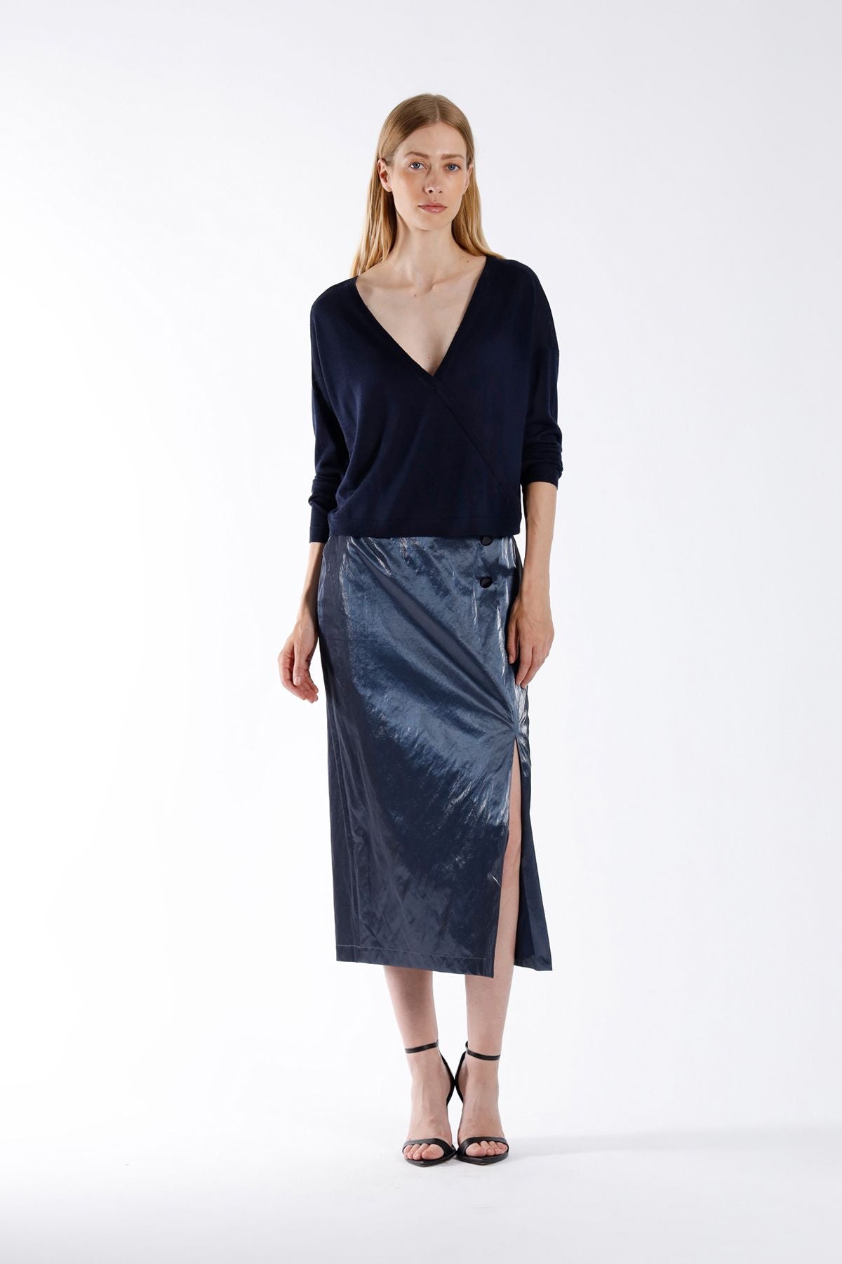 Overdag of ’s avonds, de WEEKEND trui voelt altijd goed. Je kunt het overslagdetail aan de voorkant of aan de achterkant dragen voor een compleet andere look.