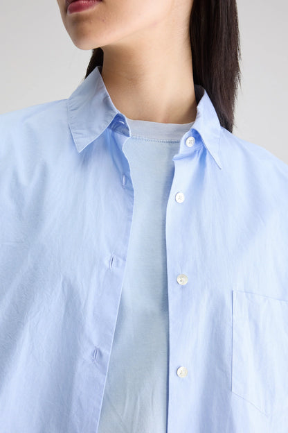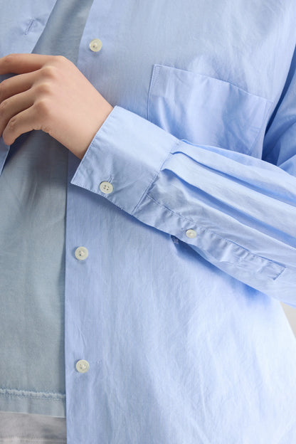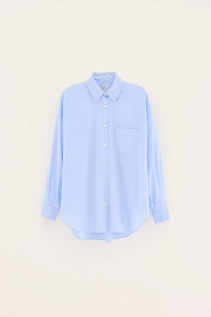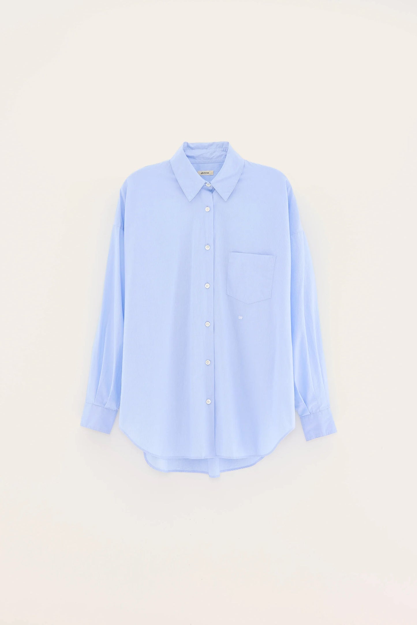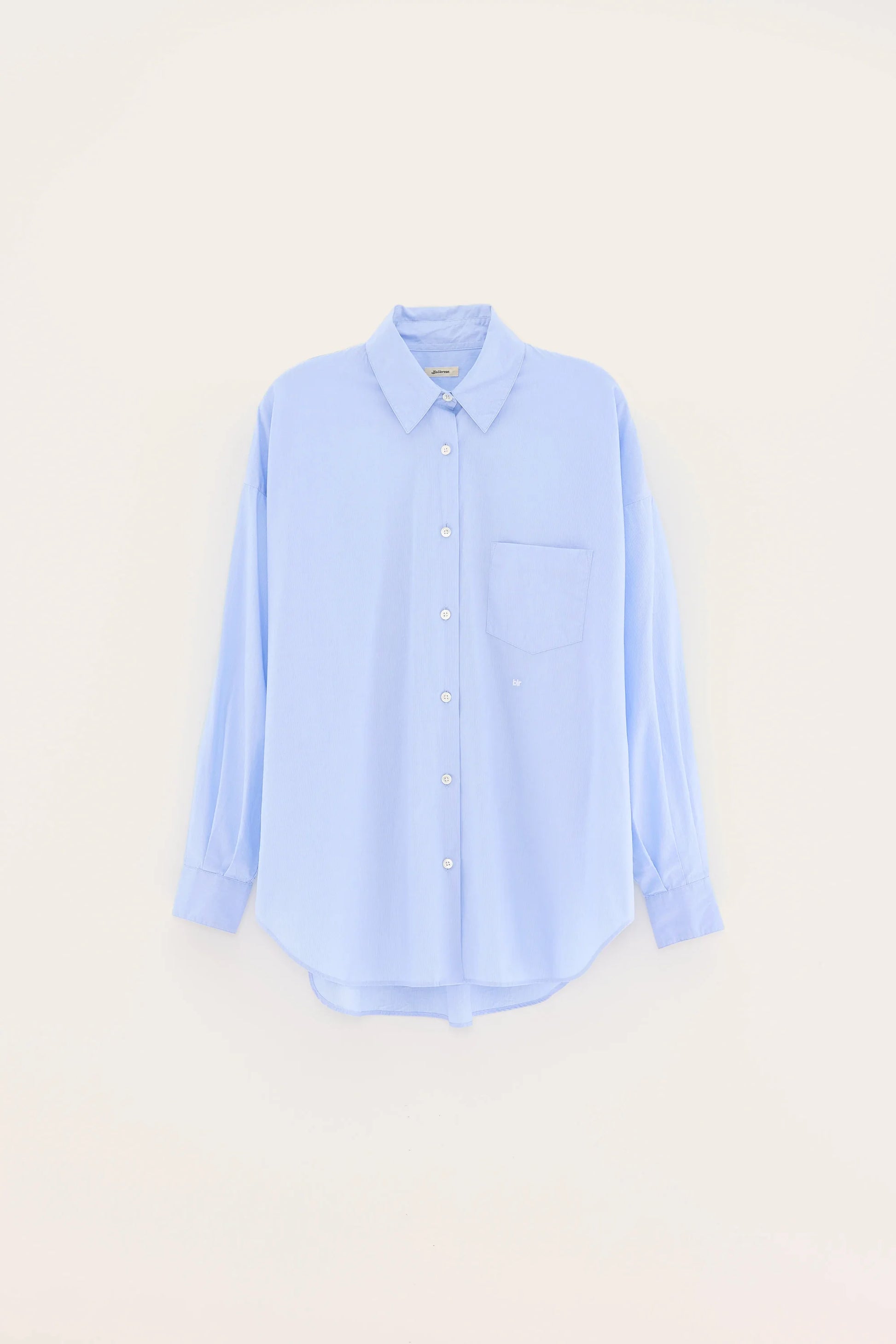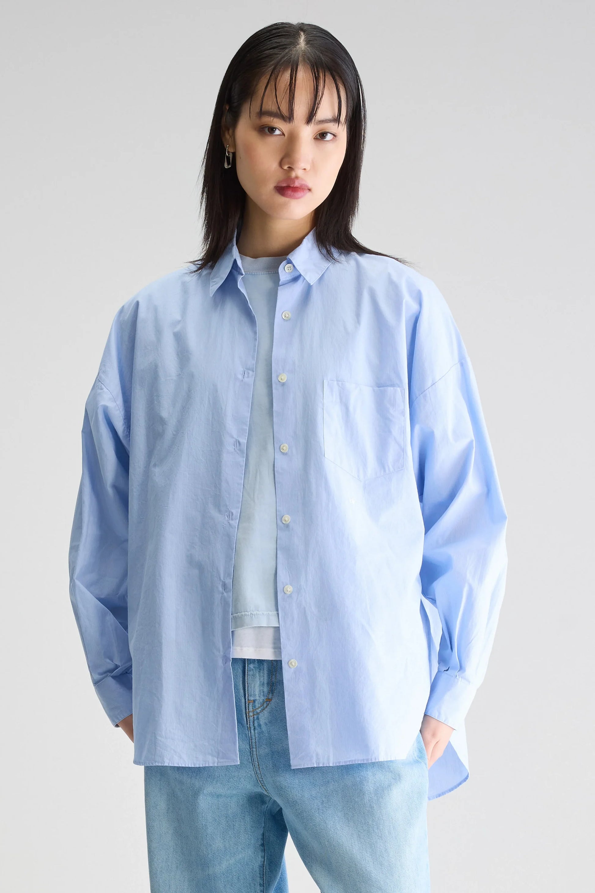 Oversized button-up shirt met lange mouwen, een overhemdkraag en borstzak, gemaakt van katoenen poplin met lichtblauwe strepen.