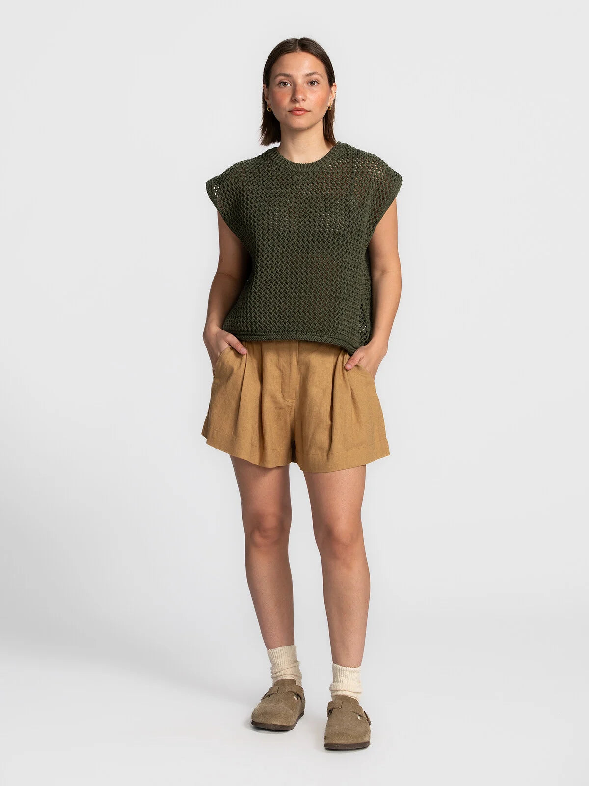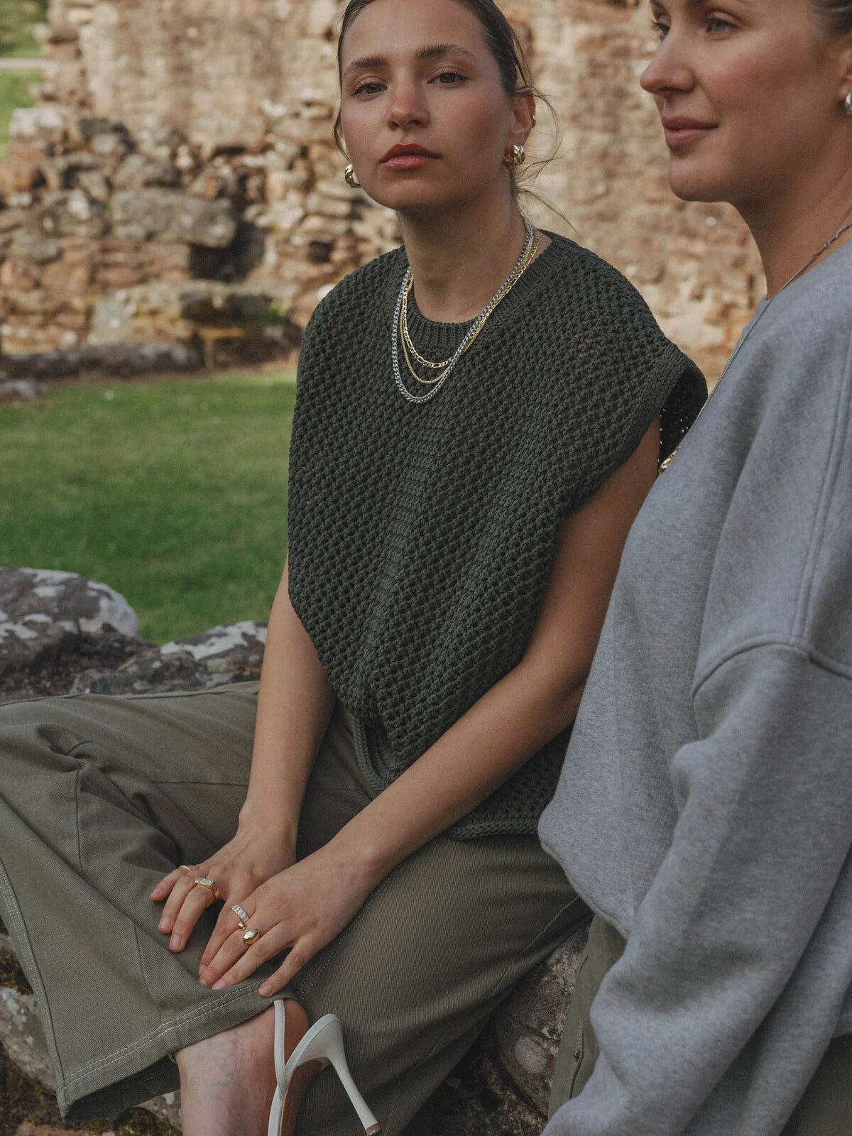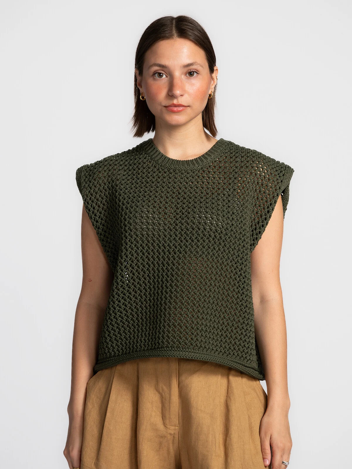 Relaxed knit met een twist. Deze mouwloze top in luchtige tube yarn heeft een losse fit en een prachtige textuur. Perfect op warme dagen of met een longsleeve eronder wanneer het frisser wordt. Tijdloos, veelzijdig en effortless cool.