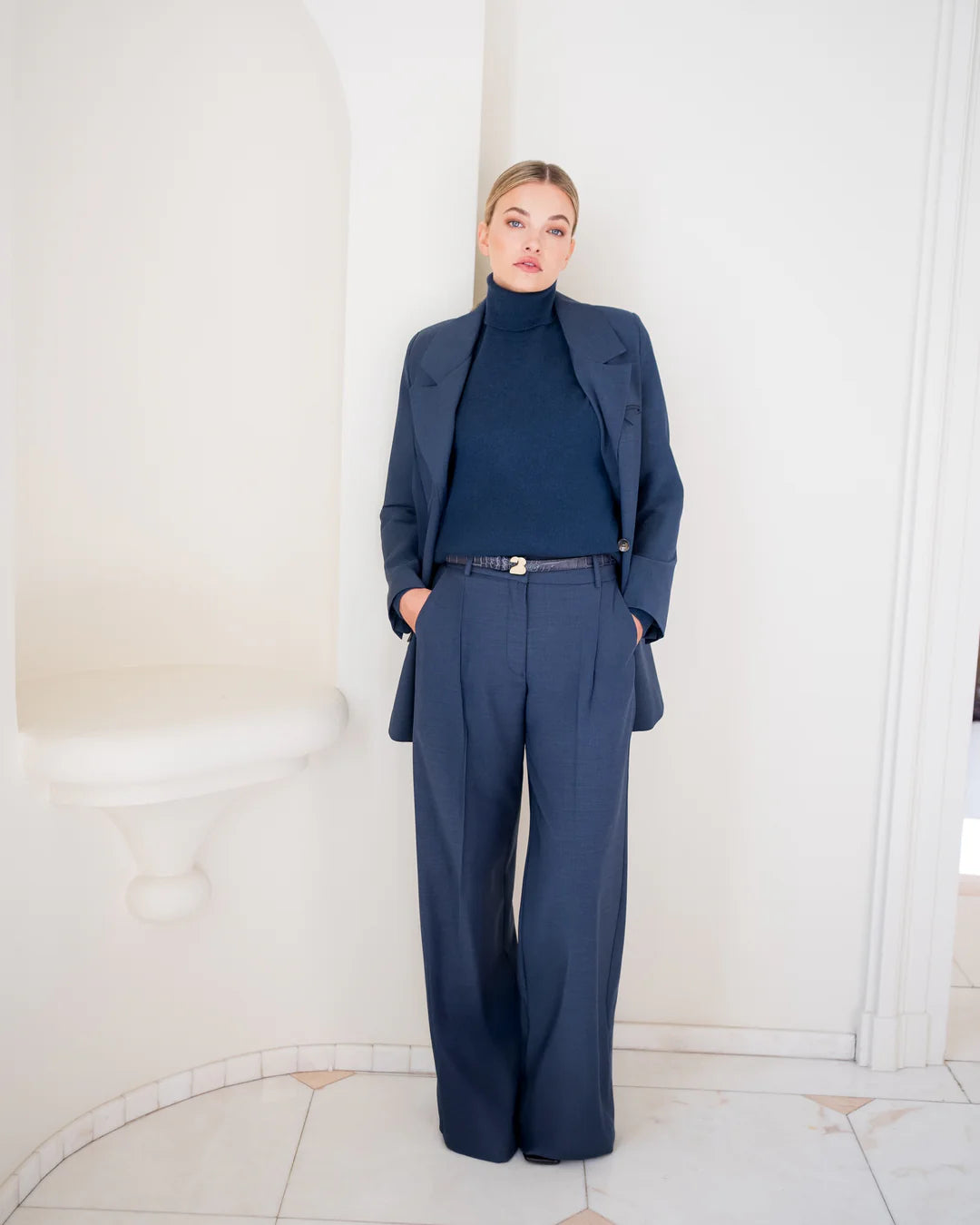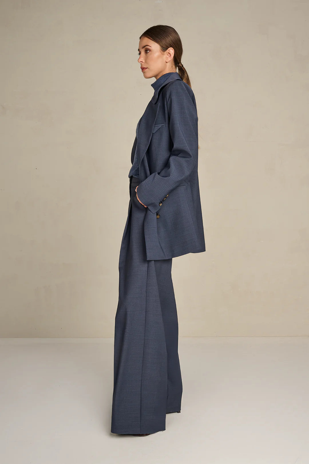 De Rachel blazer heeft een subtiel oversized fit — precies goed voor een relaxte maar toch verzorgde look. Combineer met jeans voor casual chic of draag met de Edith broek voor een elegante, verfijnde outfit.